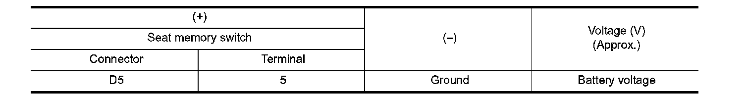 Check voltage between seat memory switch harness connector and ground.