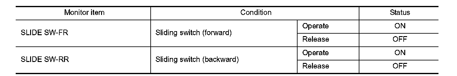 2. Select "SLIDE SW-FR", "SLIDE SW-RR" in the "Data monitor" mode using CONSULT-III.