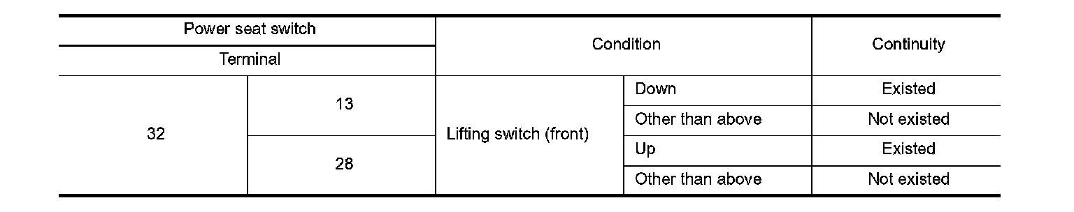3. Check continuity between power seat switch terminals.