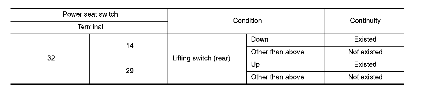 3. Check continuity between power seat switch terminals.