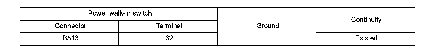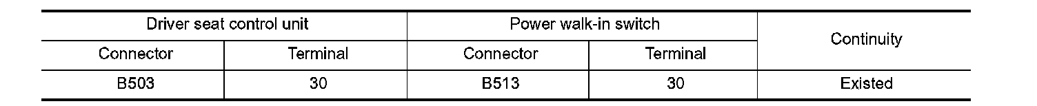 2. Check continuity between driver seat control unit harness connector and power walk-in switch harness connector.