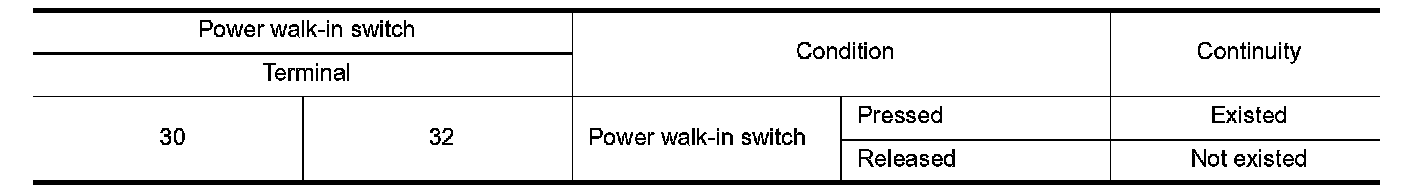 3. Check continuity between power walk-in switch terminals.