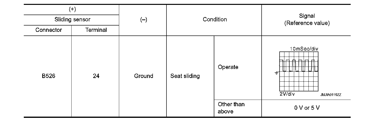 2. Check signal between sliding sensor harness connector and ground with oscilloscope.