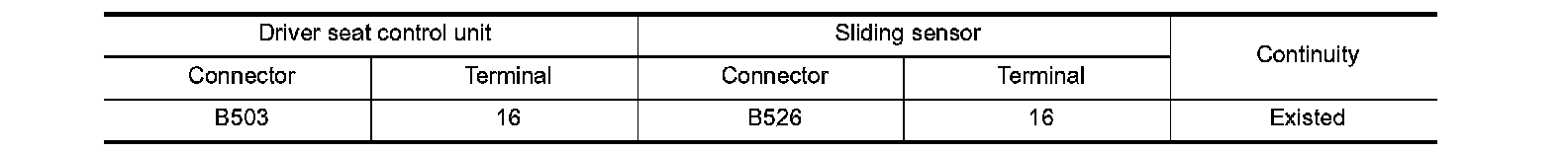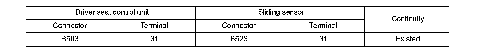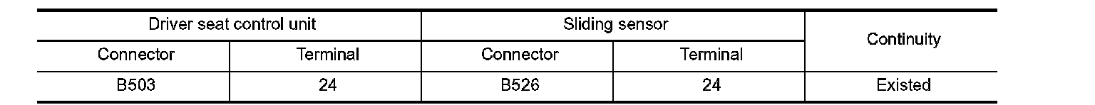 2. Check continuity between driver seat control unit harness connector and sliding sensor harness connector.