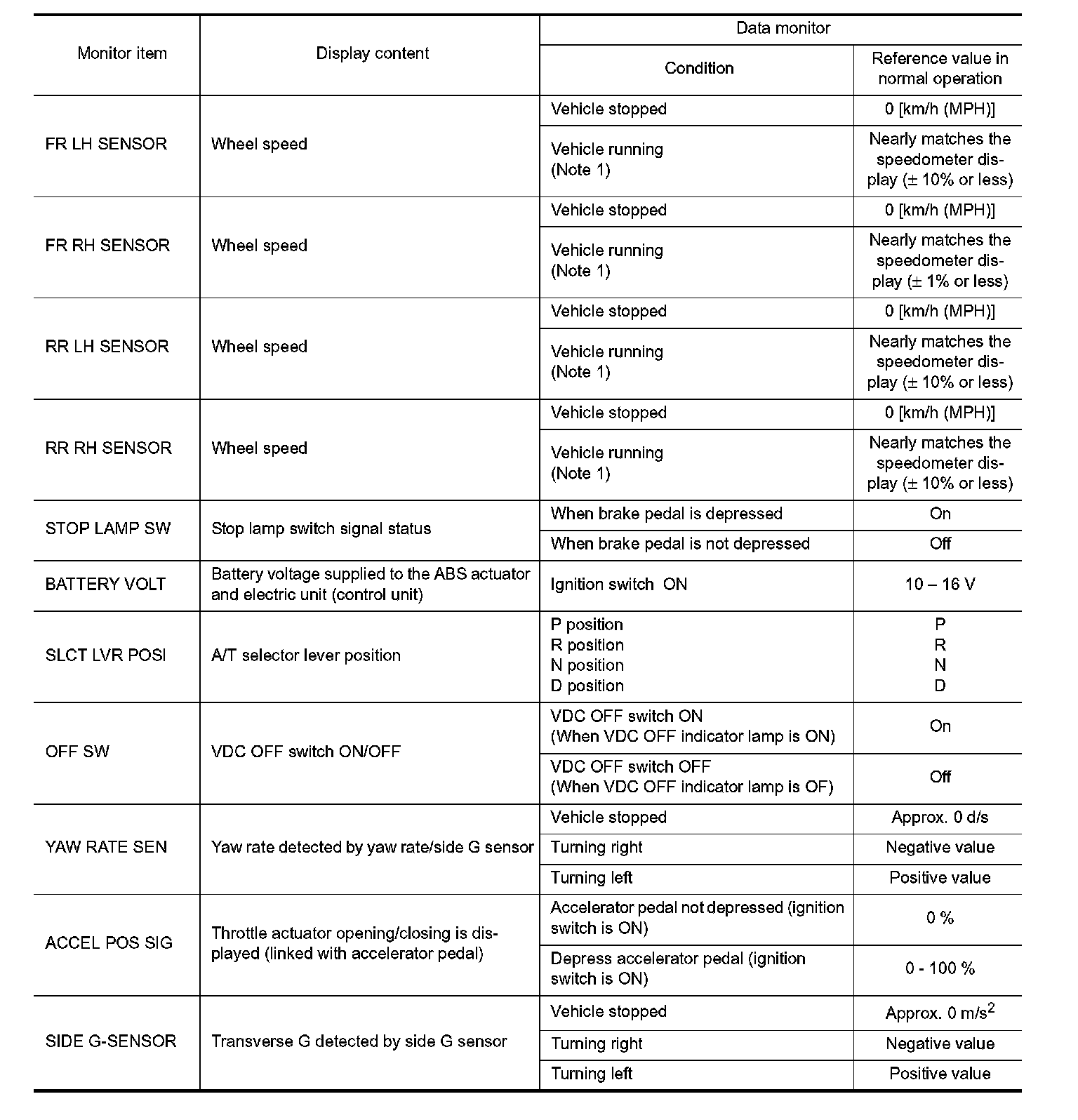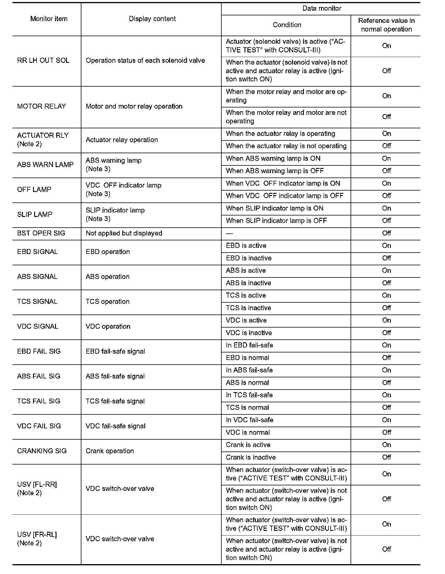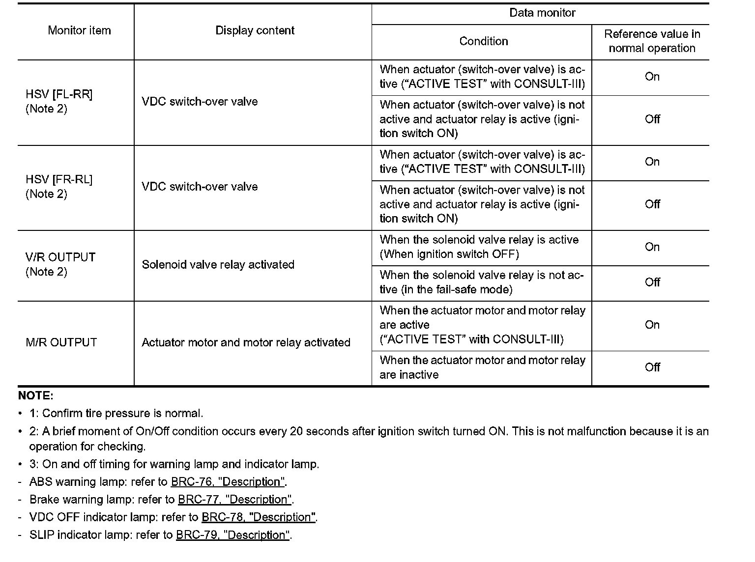 ^ 2: A brief moment of On/Off condition occurs every 20 seconds after ignition switch turned ON. This is not malfunction because it is an