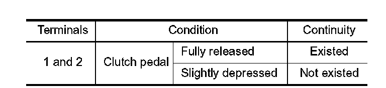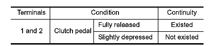 2. Check the continuity between ICC clutch switch terminals under the following conditions.