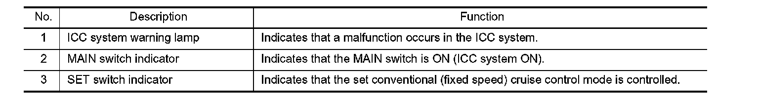 After hold the MAIN switch ON for longer than approximately 1.5 seconds, the ICC system display goes out.