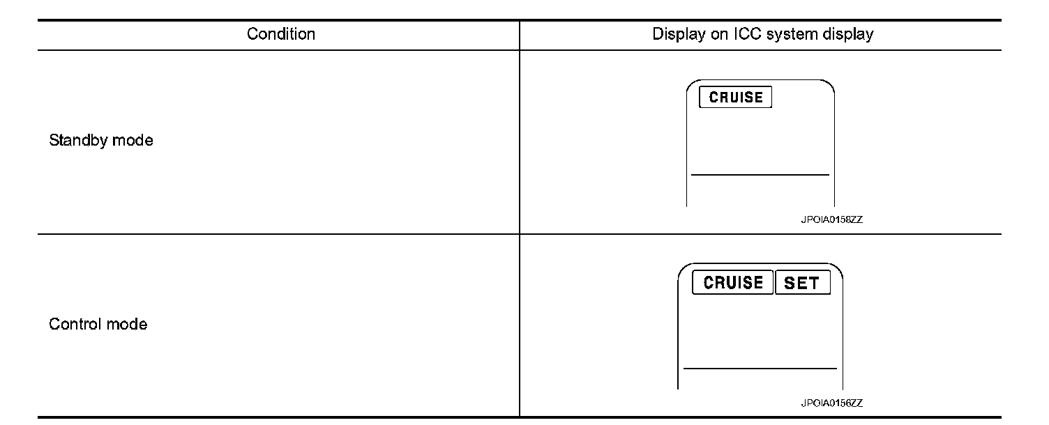 When pushing the MAIN switch ON, the ICC system display and the MAIN switch indicator are displayed on the information display.