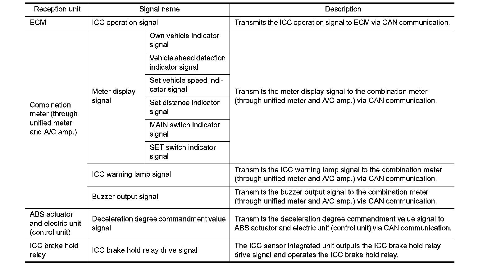 ICC SENSOR INTEGRATED UNIT INPUT/OUTPUT SIGNAL ITEM