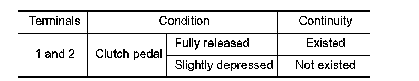 2. Check the continuity between ASCD clutch switch terminals under the following conditions.