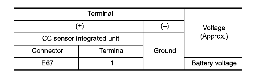 4. Check voltage between ICC sensor integrated unit harness connector and ground.