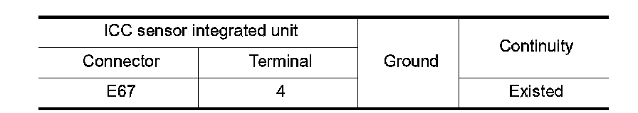 2. Check for continuity between ICC sensor integrated unit harness connector and ground.