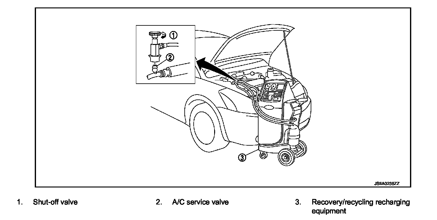 2. Connect recovery/recycling recharging equipment to the service valves.
