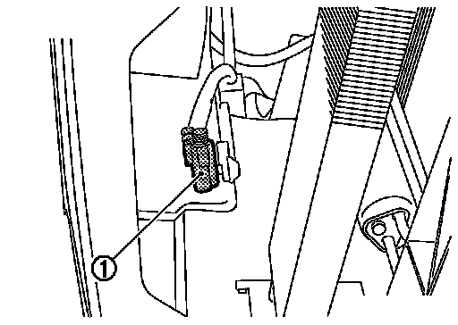 The ambient sensor (1) is attached on hood lock stay assembly. It detects ambient temperature and converts it into a resistance value which is then input into the unified meter and A/C amp.