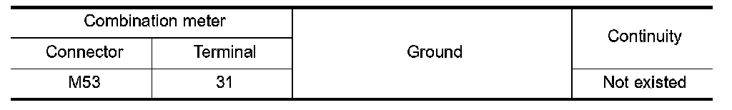 4. Check continuity between combination meter harness connector terminal and ground.