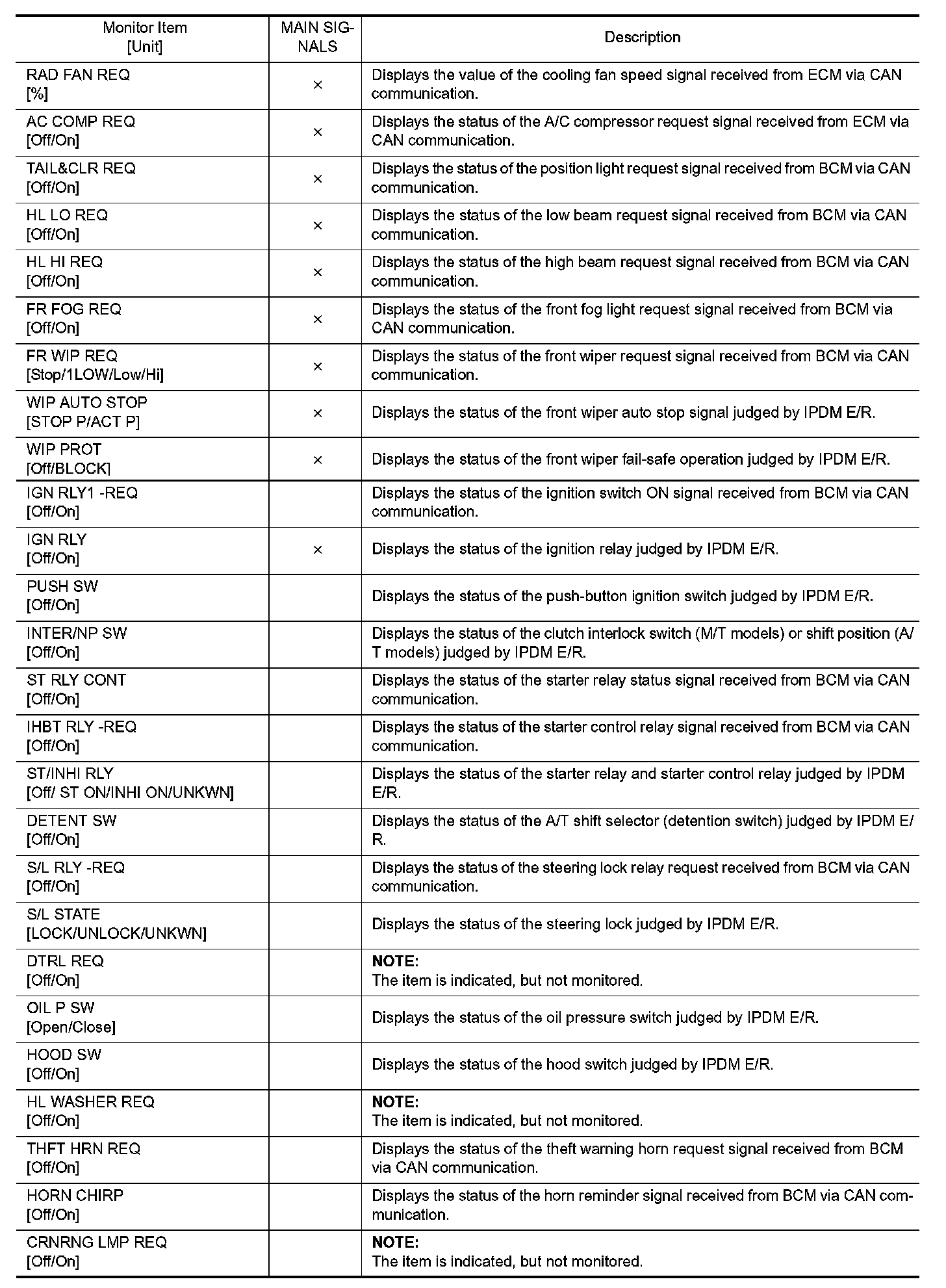 Diagnosis System (IPDM E/R)