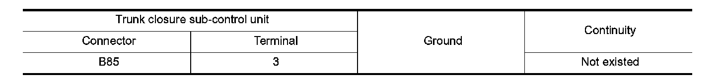 3. Check continuity between trunk closure sub-control unit harness connector and ground.