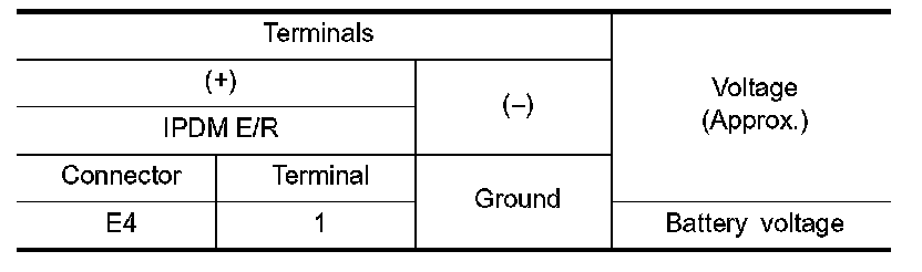 3. Check voltage between IPDM E/R harness connector and the ground.
