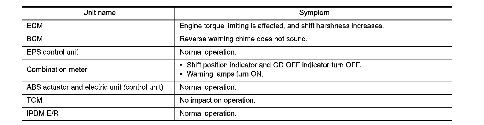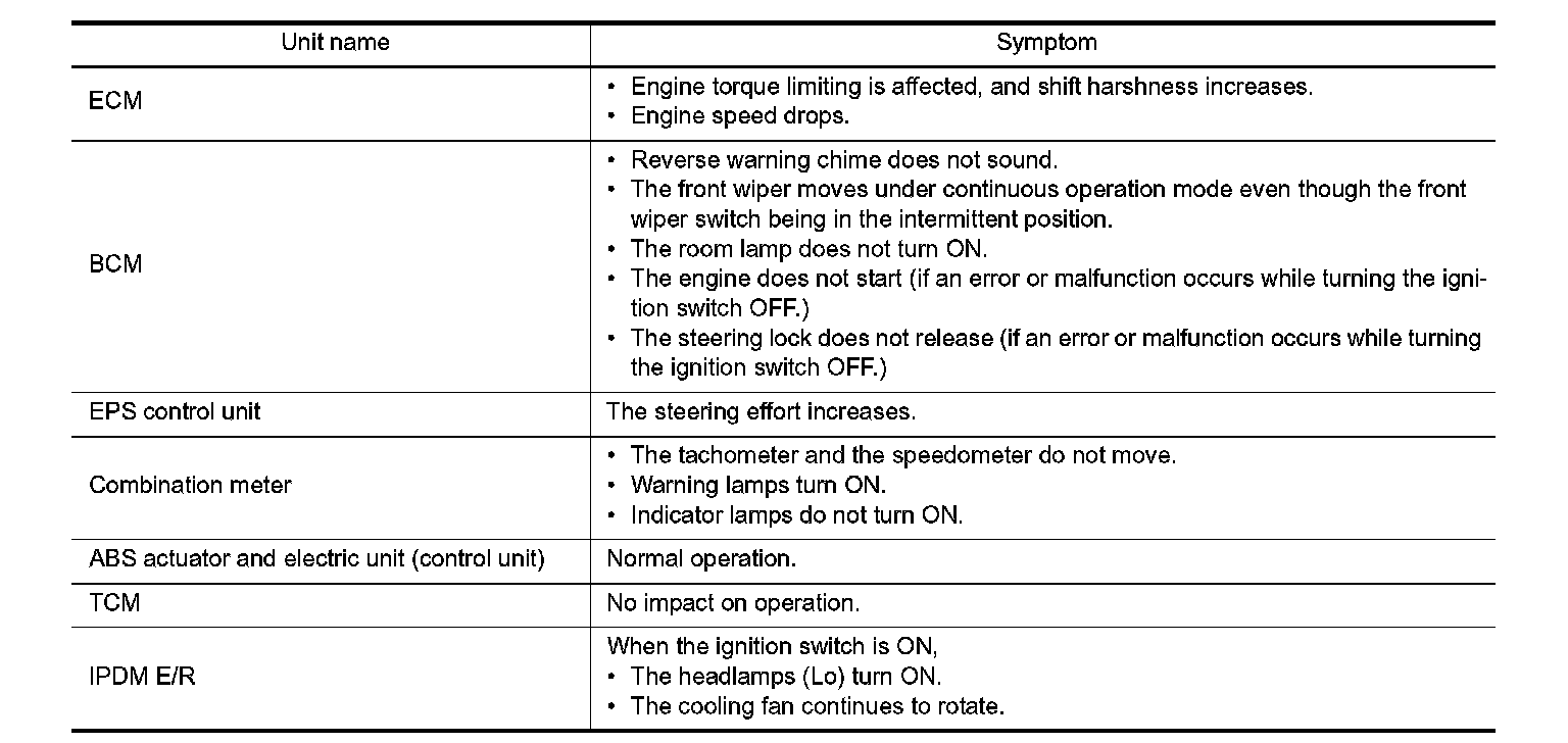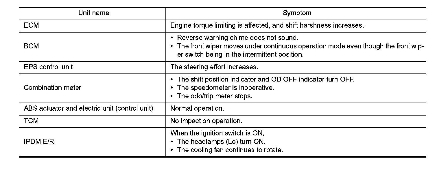 - Each vehicle differs in symptom of each unit under fail-safe mode and CAN communication line wiring.