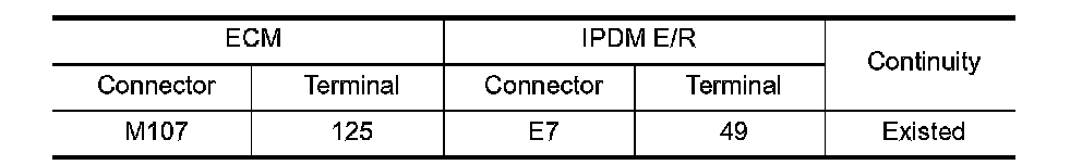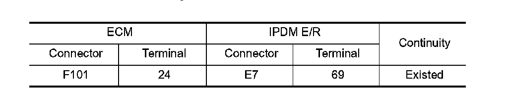 3. Check the continuity between ECM harness connector and IPDM E/R harness connector.