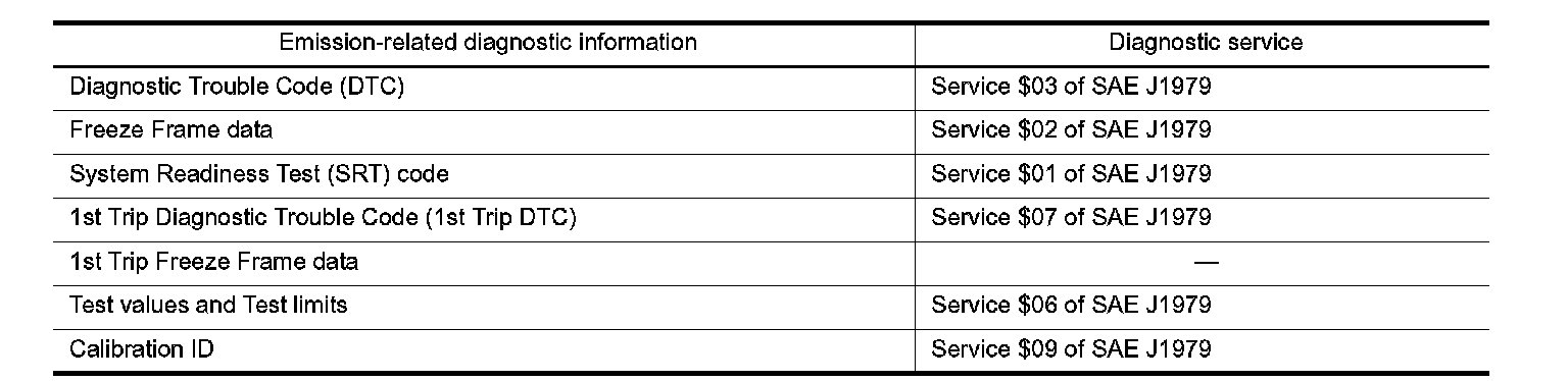 System Readiness Test (SRT) code is specified in Service $01 of SAE J1979.