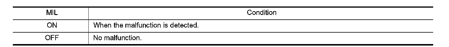 The malfunction indicator lamp (MIL) on the instrument panel illuminates when the same malfunction is detected in two consecutive trips (Two trip detection logic), or when the ECM enters fail-safe mode. (Refer to Fail Safe.)