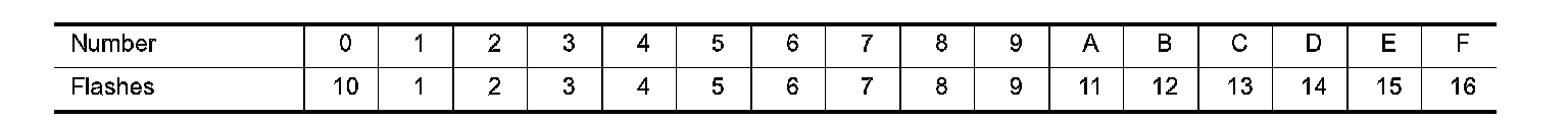 A particular trouble code can be identified by the number of four-digit numeral flashes per the following.