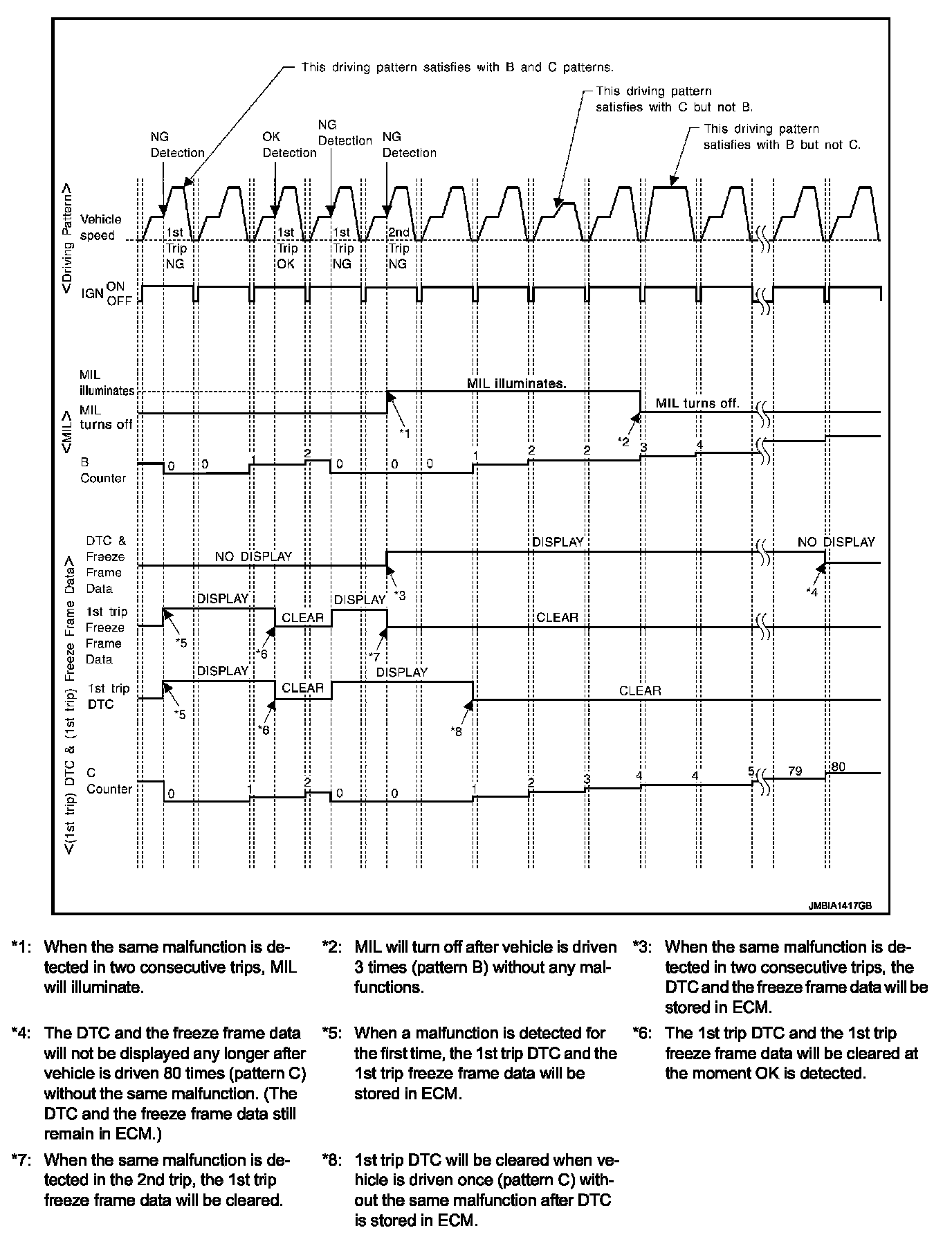 - The B counter will be cleared when the malfunction is detected once regardless of the driving pattern.