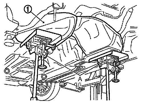 8. Support the lower part of fuel tank (1) with transmission jack (A).