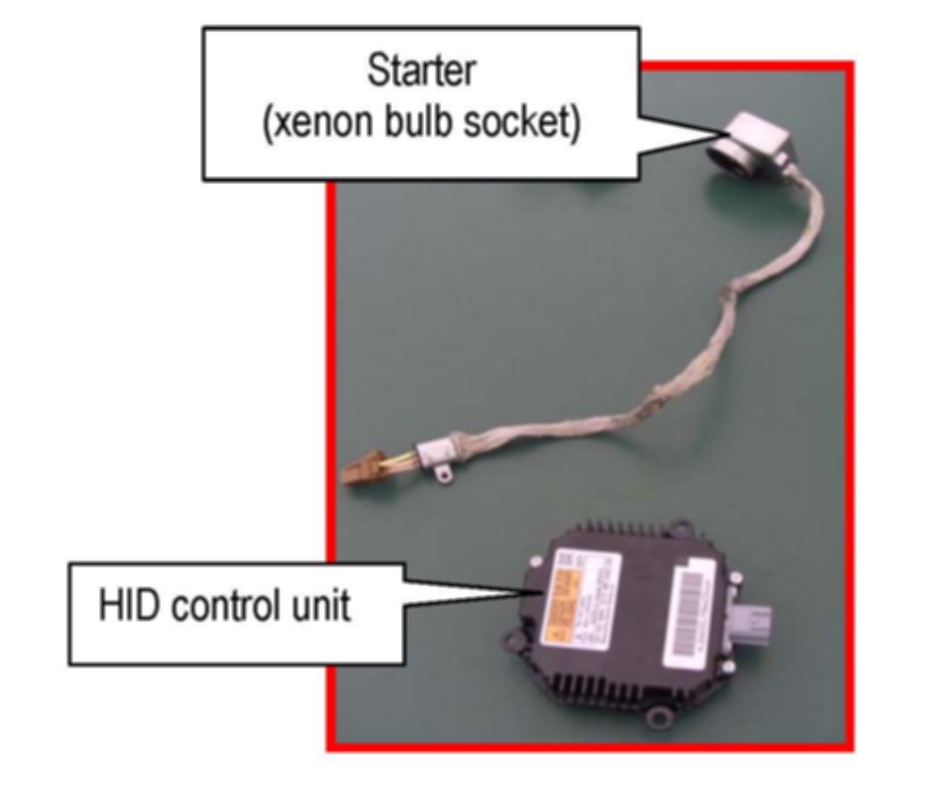 ^ The HID control unit includes a starter (xenon bulb socket). For some models, the starter is not replaceable. In this case, replace only the HID control unit using the old starter.