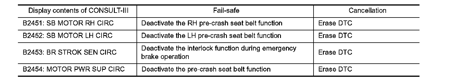 When a malfunction occurs in the following system, the pre-crash seat belt function is controlled according to the malfunctioning parts.