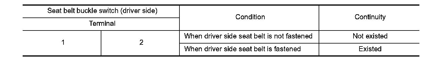 1.CHECK SEAT BELT BUCKLE SWITCH (DRIVER SIDE)