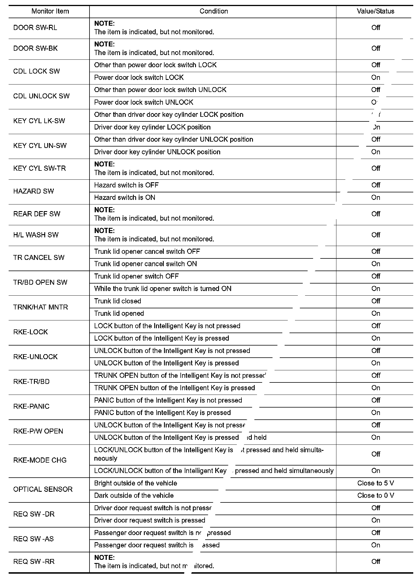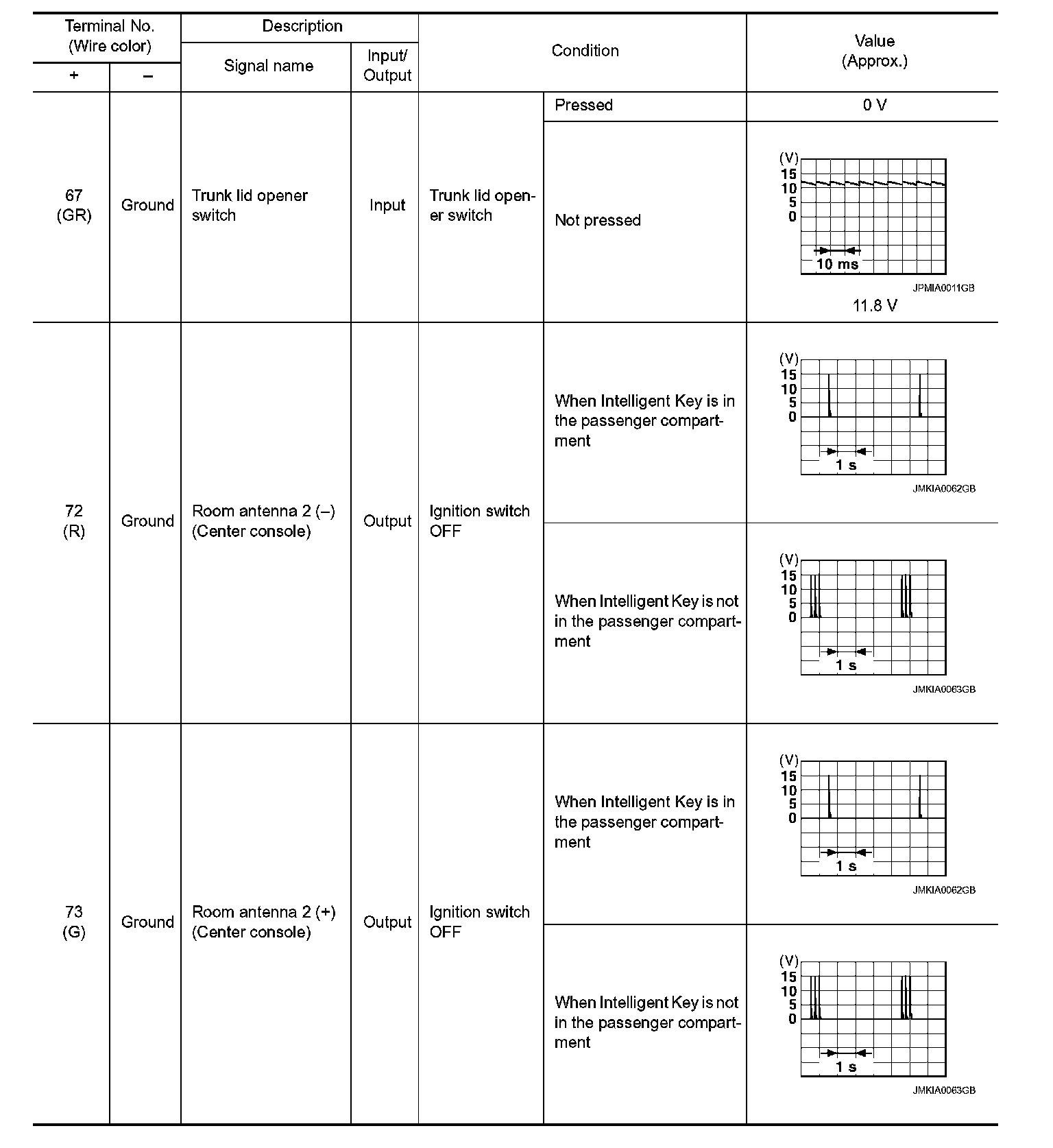 Pinout Values and Diagnostic Parameters