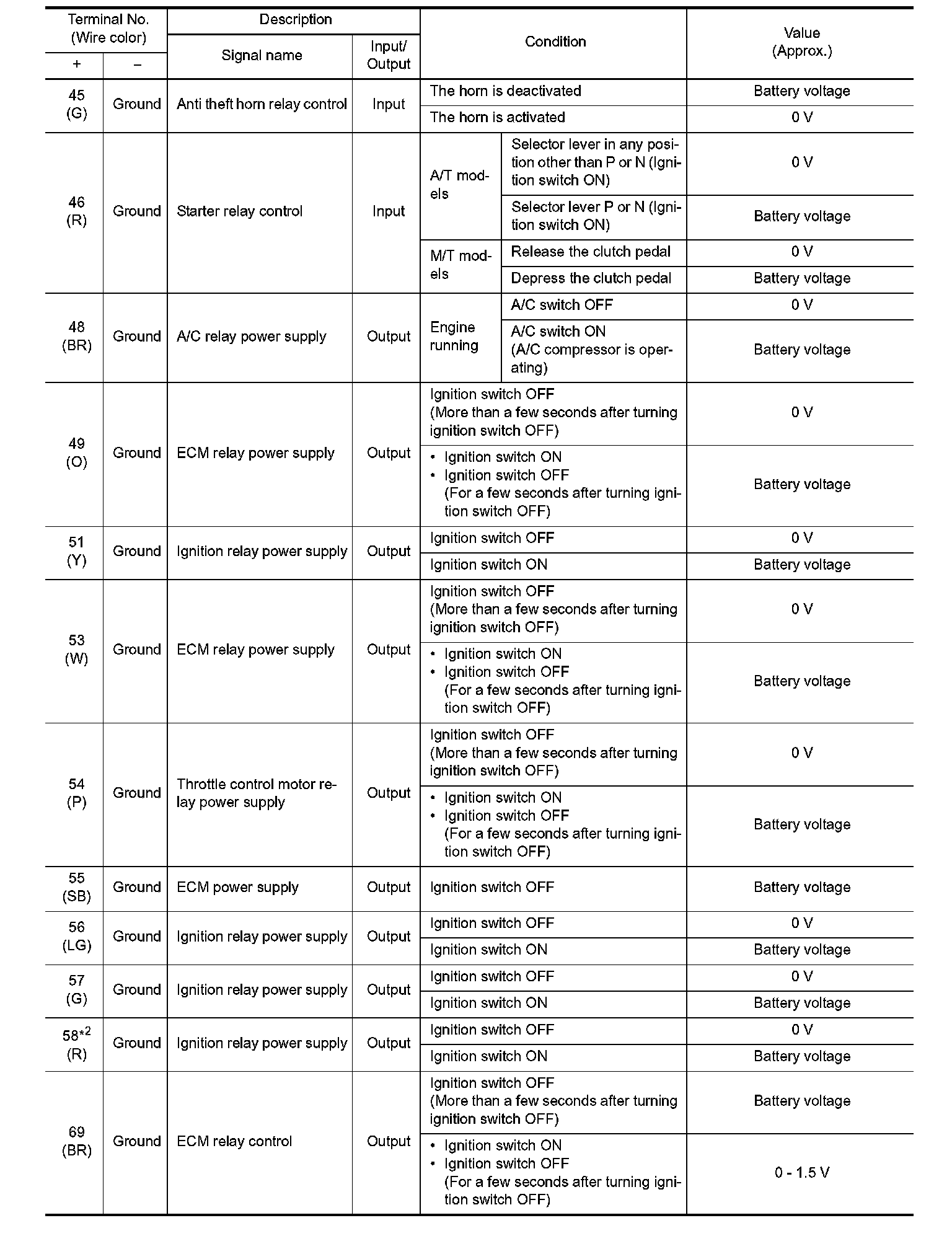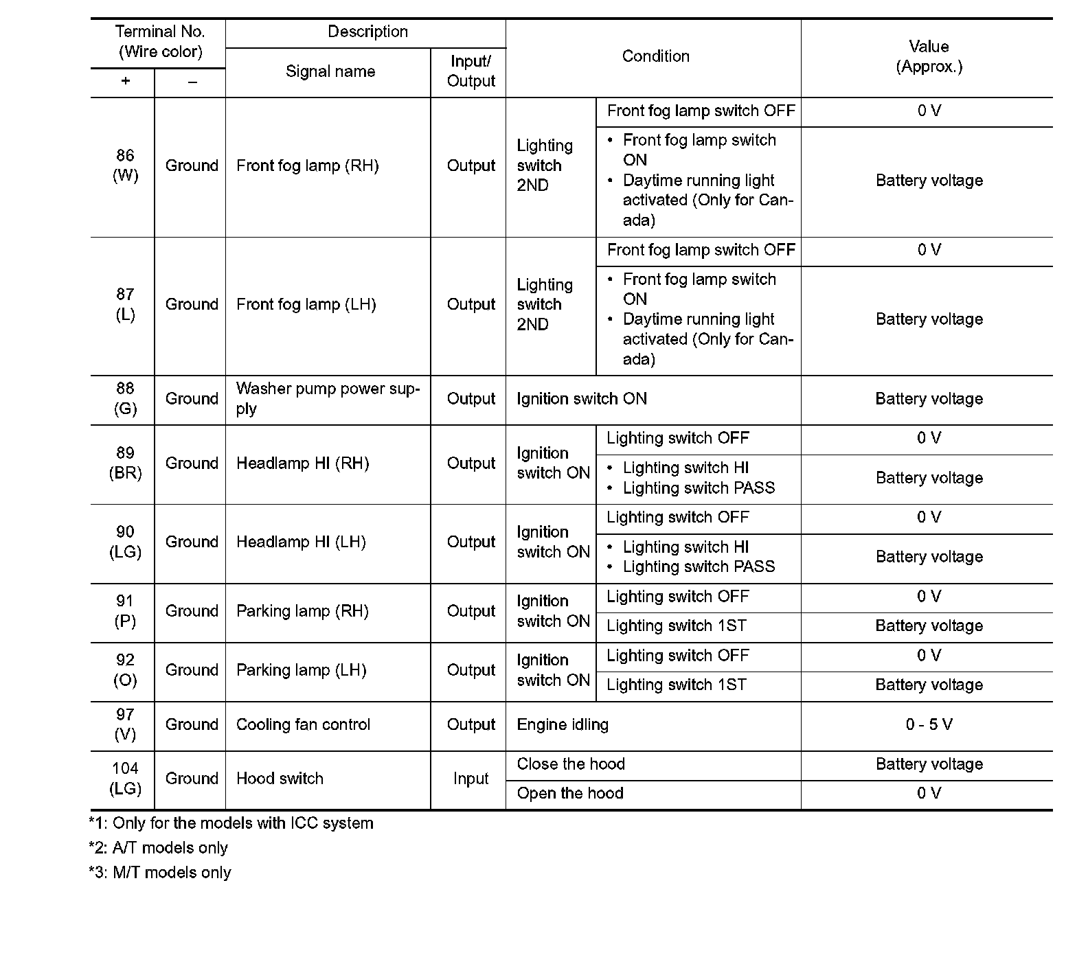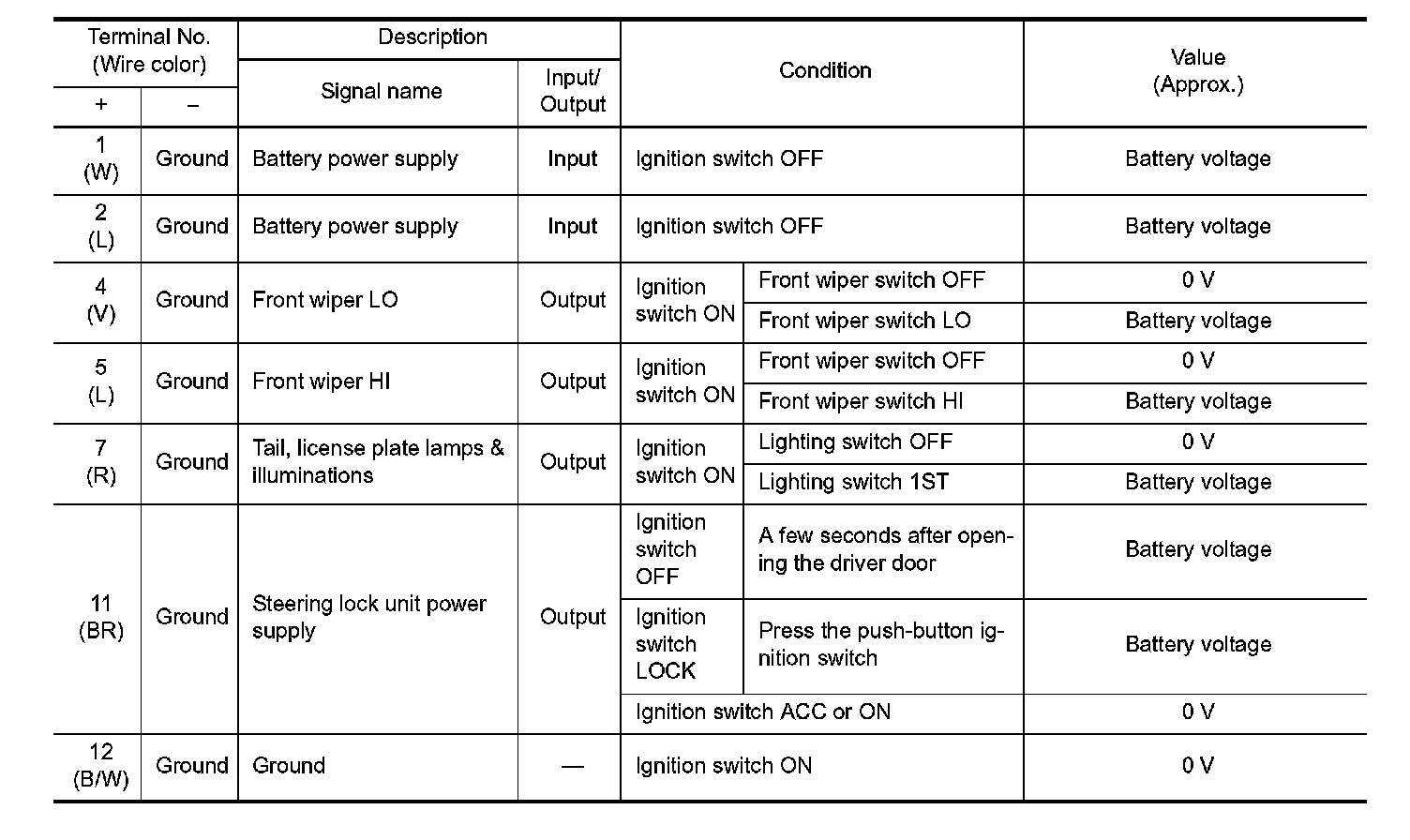 Pinout Values and Diagnostic Parameters