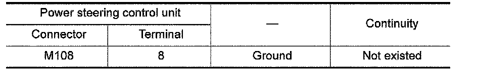 5. Check the continuity between power steering control unit harness connector and ground.
