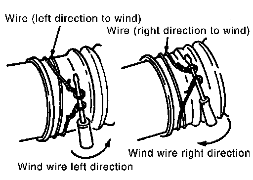 c. Twist boot clamp as shown. Pay attention to relationship between winding and twisting directions.