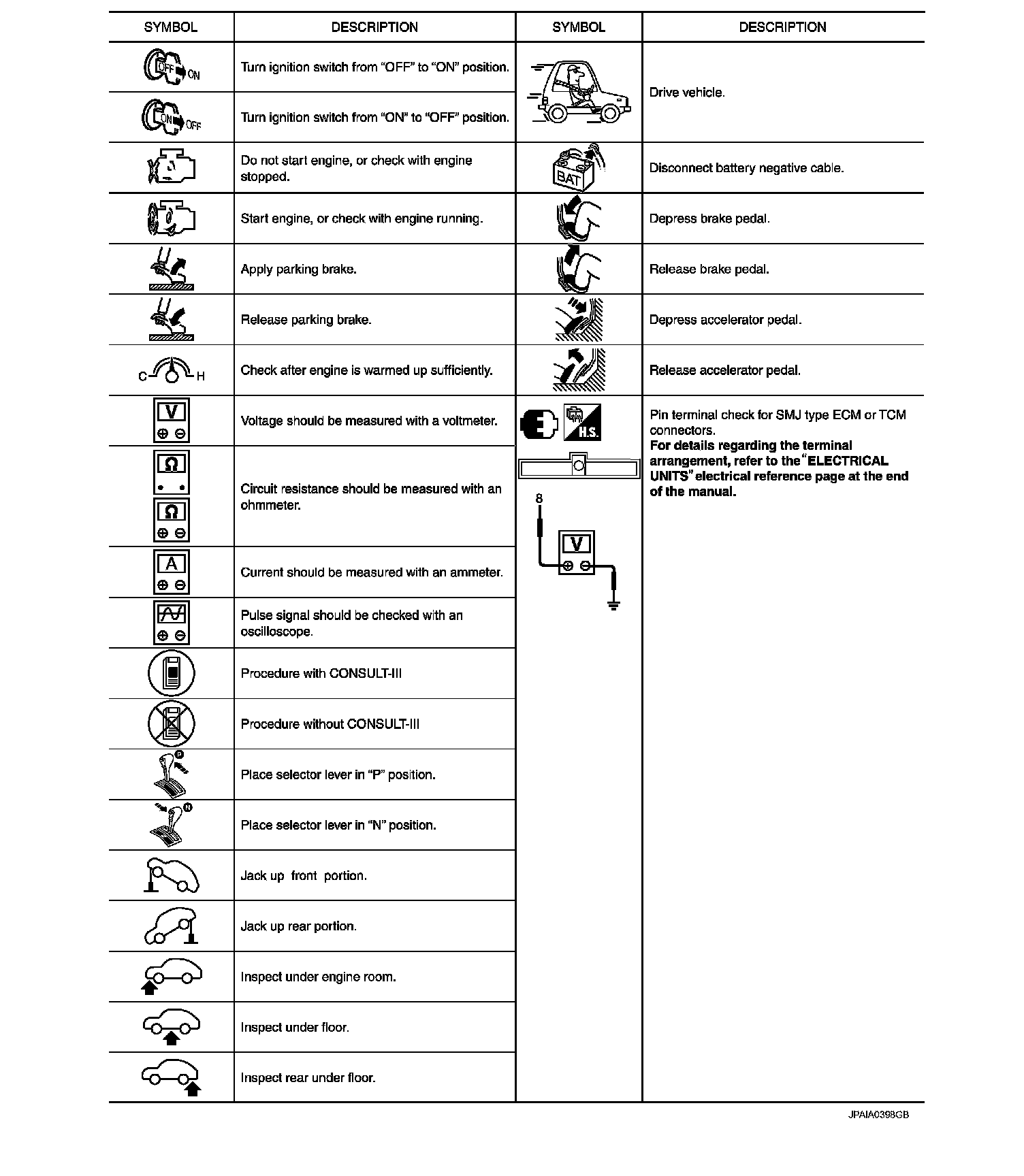 Key to Symbols Signifying Measurements or Procedures