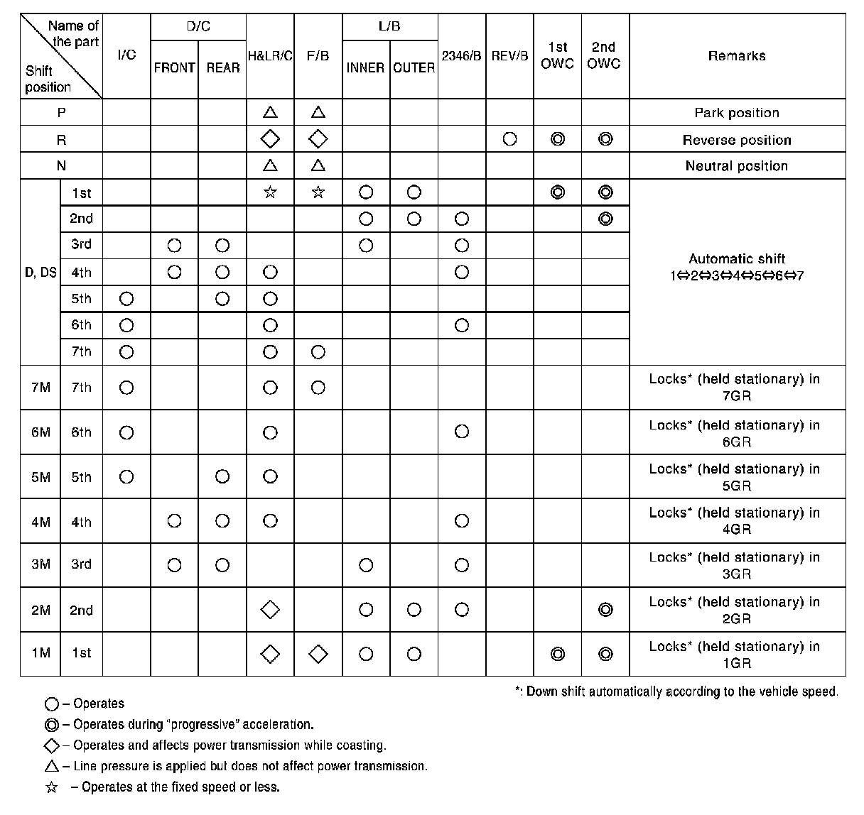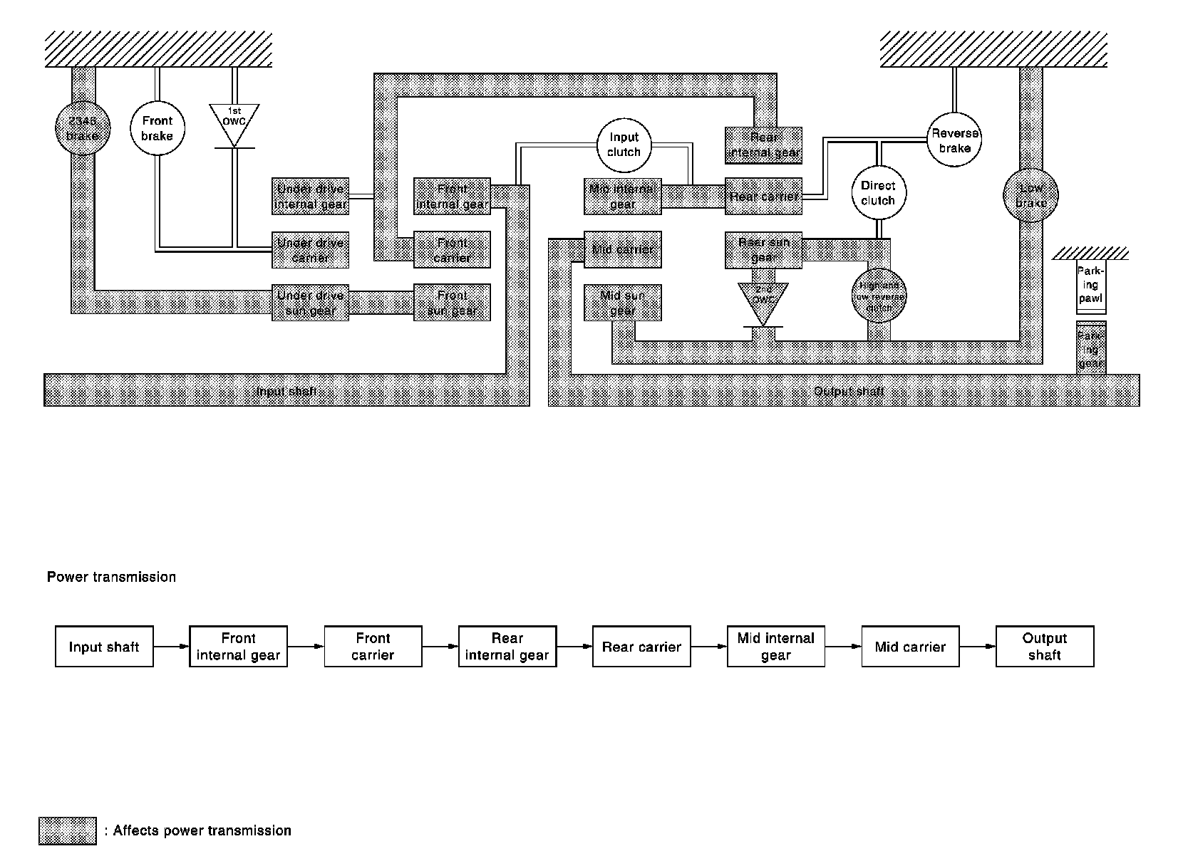 - The same as for the "N" position, since the low brake is released, so torque from the input shaft drive is not transmitted to the output shaft.