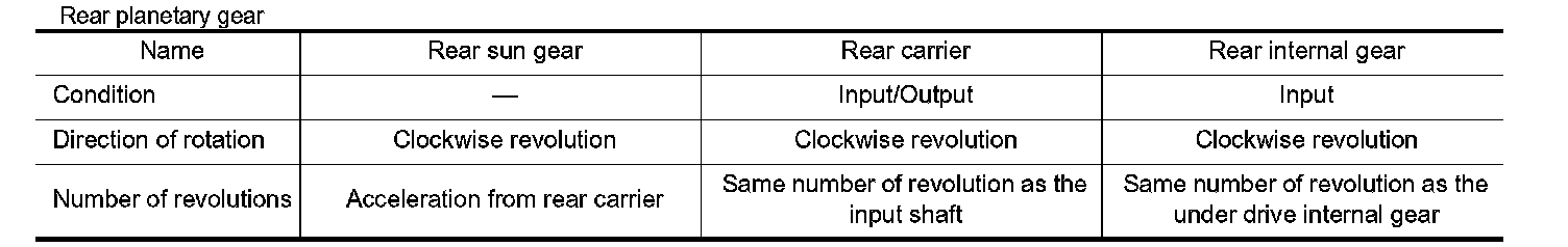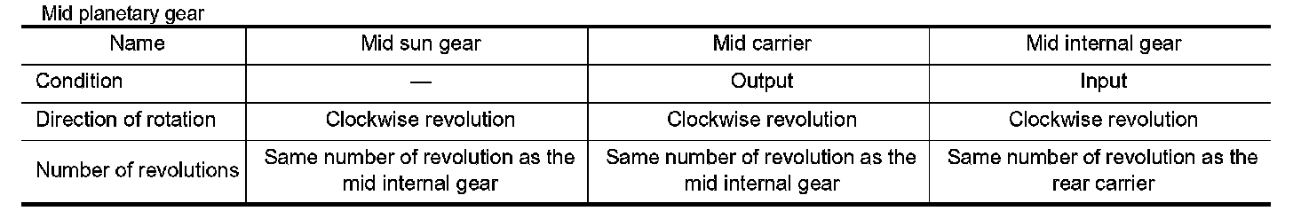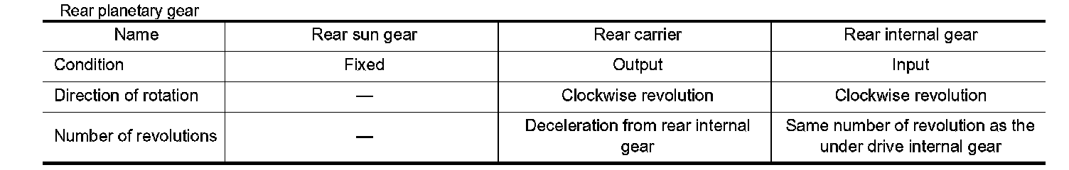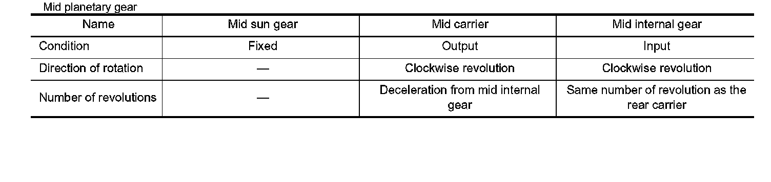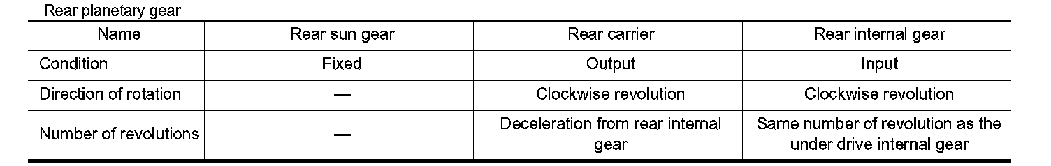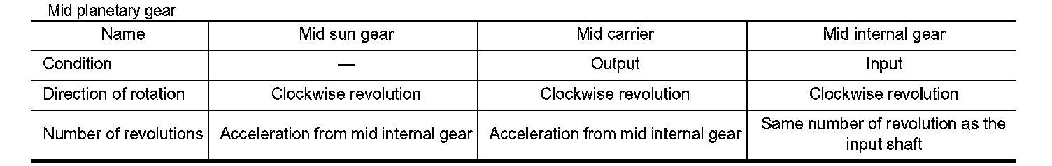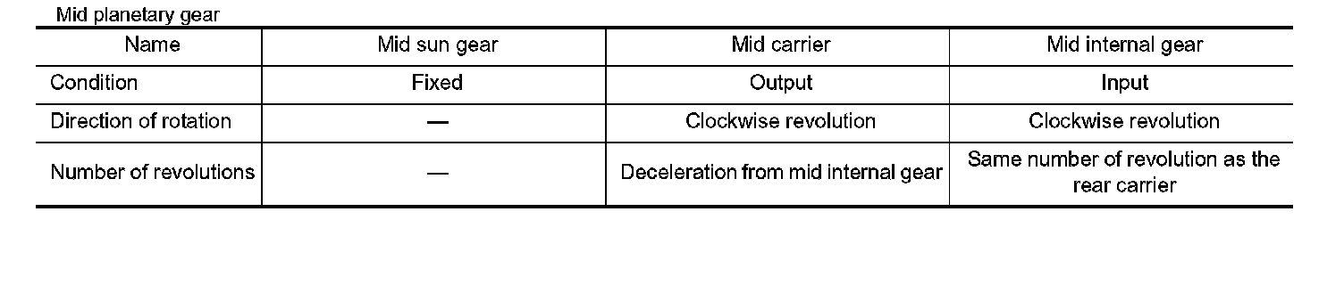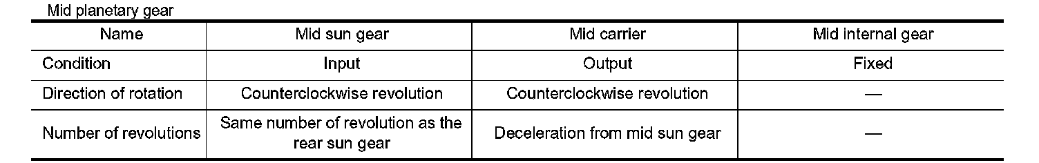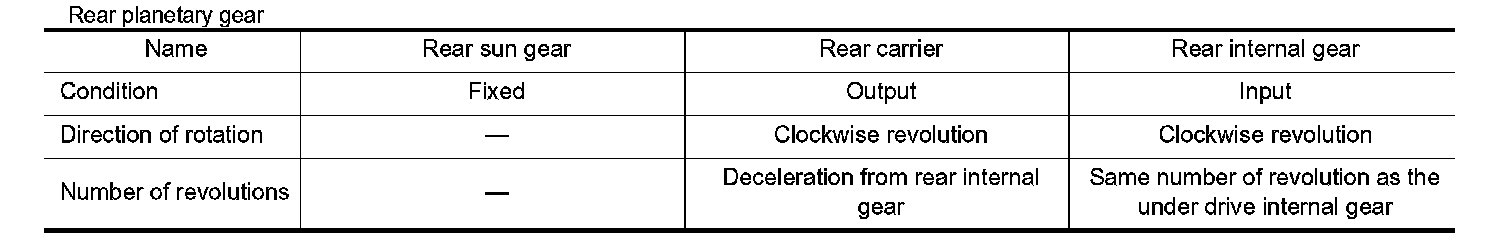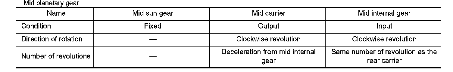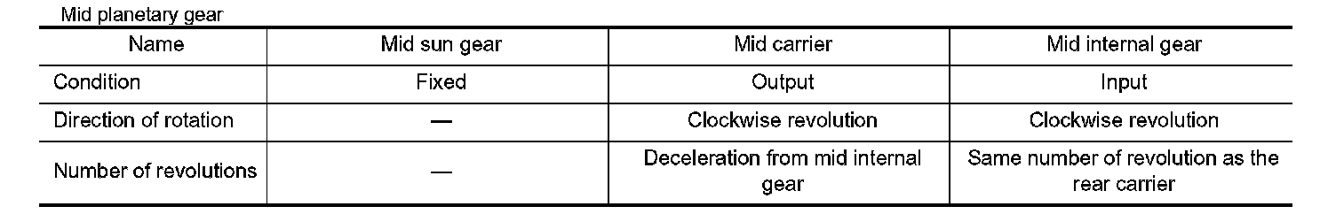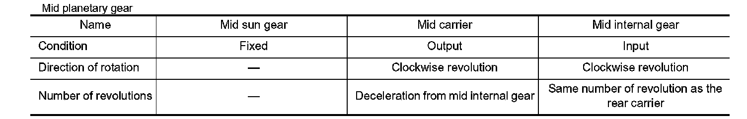 - The rear carrier and the mid internal gear are fixed by the reverse brake.