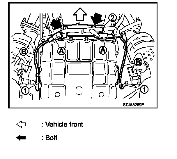 5. Remove bracket (2) from A/T assembly. Refer to Exploded View.