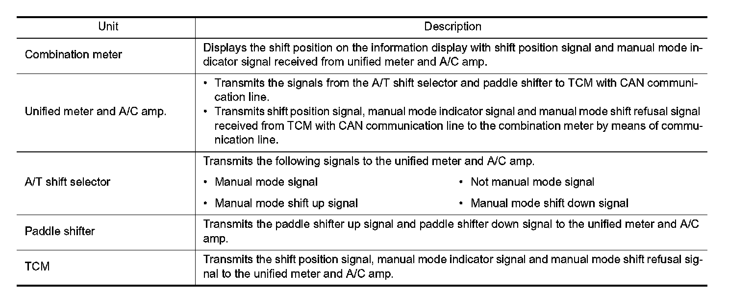SHIFT POSITION INDICATOR : Component Description