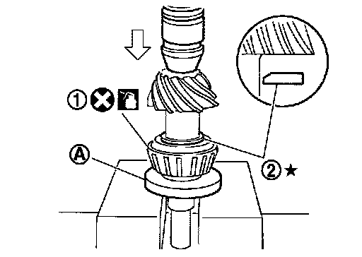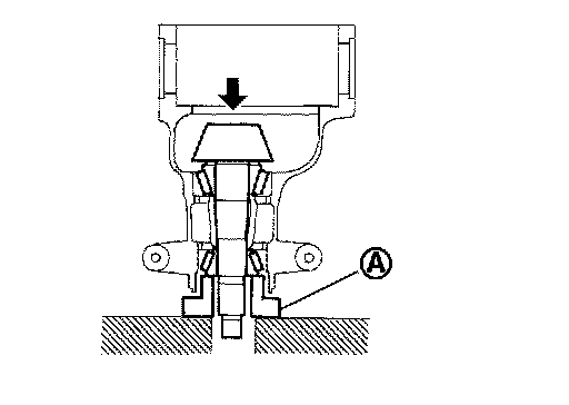 7. Using suitable a spacer (A) (commercial service tool), press the pinion front bearing inner race to drive pinion as far as drive pinion nut can be tightened.