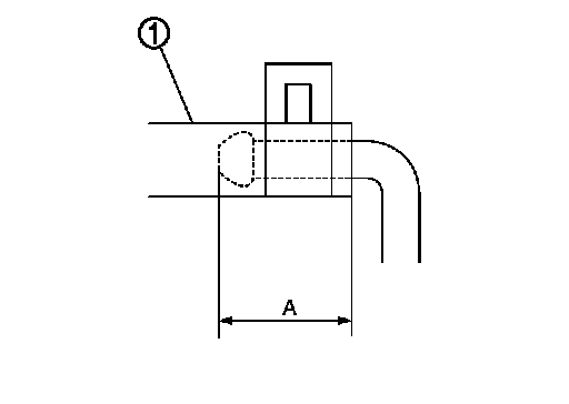 - Install the breather hose (1) to breather connector until dimension (A) shown as follows.