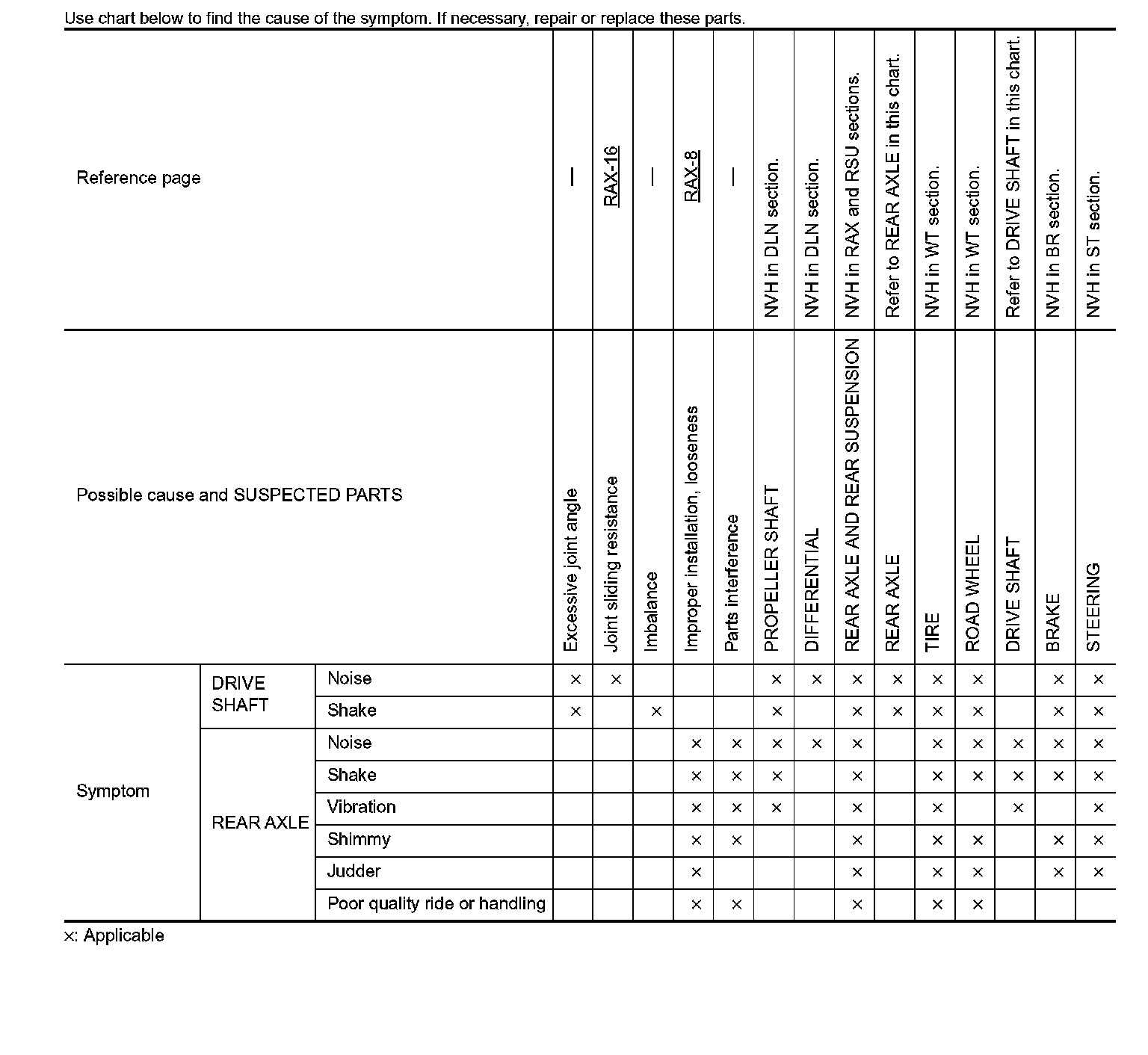 Rear Axle NVH Troubleshooting Chart