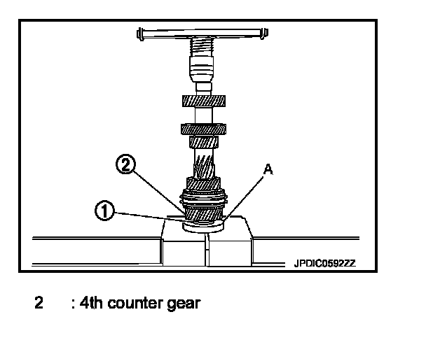d. Install 4th gear bushing, 4th needle bearing, and 4th counter gear together with 4th counter gear thrust washer to counter shaft with a pressing machine.