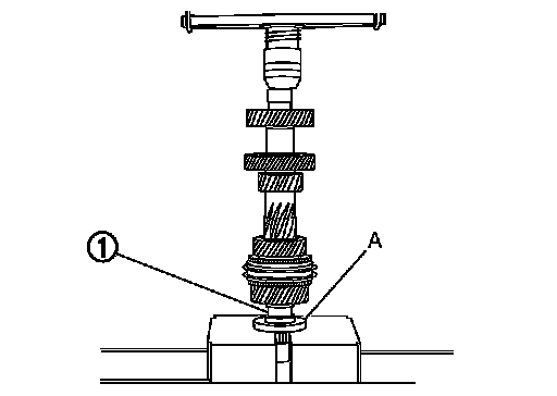d. Install 3rd-4th synchronizer hub assembly (1) to counter shaft with a pressing machine using the inserter (A) [SST: