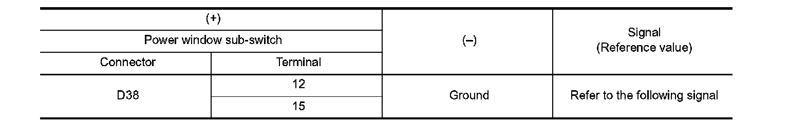 2. Check signal between power window sub-switch harness connector and ground with oscilloscope.