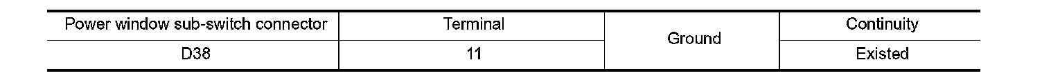 2. Check continuity between power window sub-switch harness connector and ground.