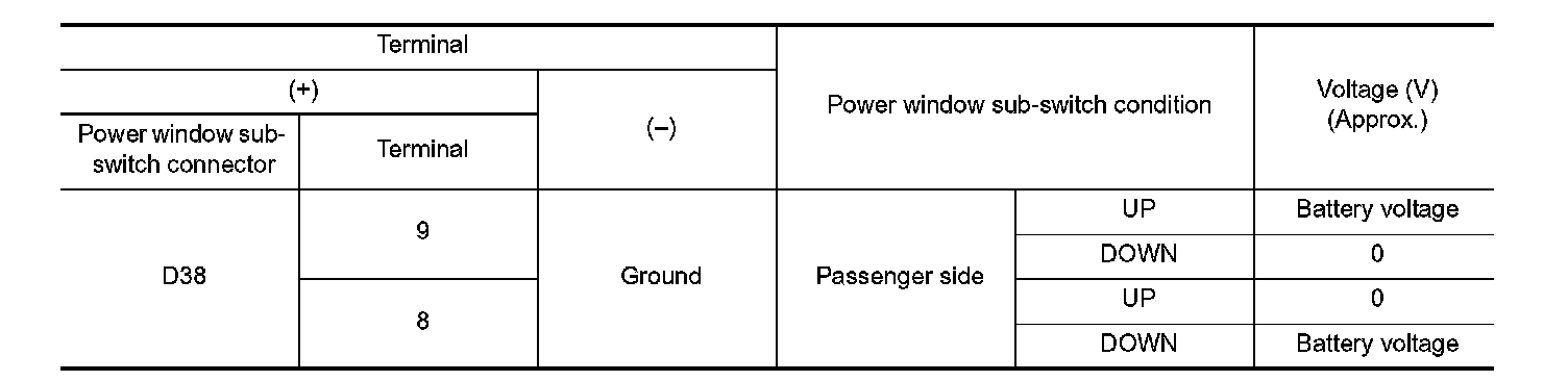 Check voltage between power window sub-switch harness connector and ground.