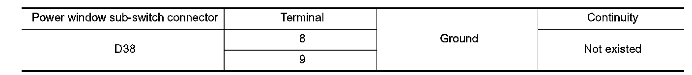 4. Check continuity between power window sub-switch connector and ground.